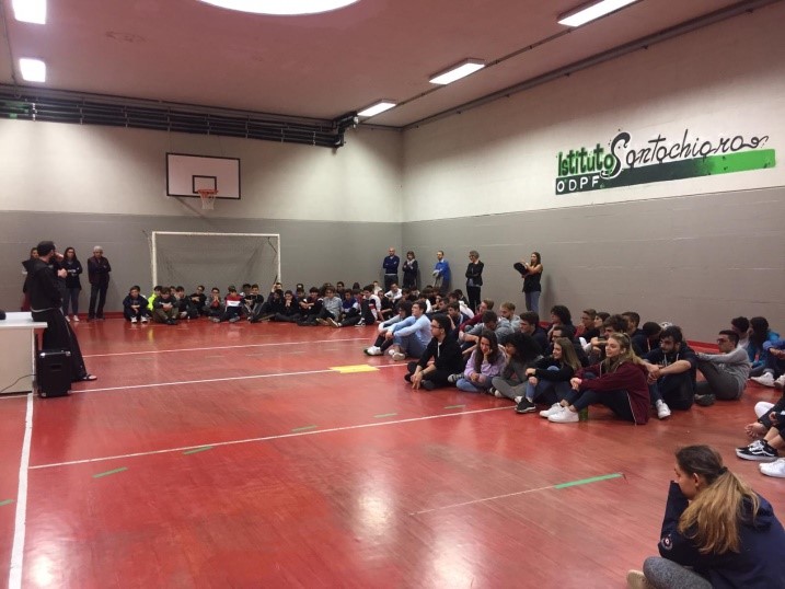 Lunedì 14 Ottobre la sede vogherese di via Scarabelli ha avuto il piacere di ospitare una delegazione di frati, suore e ragazzi provenienti da Assisi, impegnati nell’iniziativa “Ascolta la tua sete”. L’incontro è cominciato in modo originale: i religiosi hanno dato vita a un balletto inaspettato e divertente che ha coinvolto tutti, ragazzi, docenti e dirigenti scolastici. Questo inizio piacevole, dall’effetto sorpresa, ha instaurato da subito un clima “fresco”, vivace, confidenziale, informale che ha messo a proprio agio i presenti. Dopo le presentazioni, frati e suore hanno dialogato con i ragazzi, riferendo le loro esperienze. Suor Stella, la prima a prendere la parola, ha raccontato il proprio vissuto, la ricerca di un senso iniziata fin dall’ adolescenza, quando né le amiche, né il fidanzato, né la quotidianità bastavano a colmare il vuoto, a indicare la direzione. E poi, la scoperta: tutto si spiega, si compone e si armonizza nella dolcezza dello sguardo di Gesù. Proprio quegli occhi, quell’emanazione di amore infinito sono anche il motivo per cui padre Michele e padre Andrea hanno compiuto la loro scelta di vita. Davanti a noi l’esempio illuminante di San Francesco: dalla vita mondana, dall’assoluta normalità, dagli agi al sacrificio totale di sé, alla gioia della condivisione e della comunione col prossimo, vedendo in qualunque creatura il segno divino dell’impronta creatrice. E tutto l’amore grandissimo, infinito che questi nostri fratelli hanno avuto la gioia di intercettare, lo vorrebbero trasmettere ad ogni individuo: lo scopo vero dell’esistenza è conoscere se stessi, i propri desideri, le proprie paure, le proprie debolezze e viverli con fiducia, cercando la guida e la protezione di Colui che ha fatto dell’amore la propria bandiera. Solo così, aprendoci a Dio, potremo capire che cosa significhi trovarci qui sulla terra, condividere gioie e difficoltà con gli altri, dare un senso al nostro essere qui e riempirci l’anima di pace interiore e di felicità.