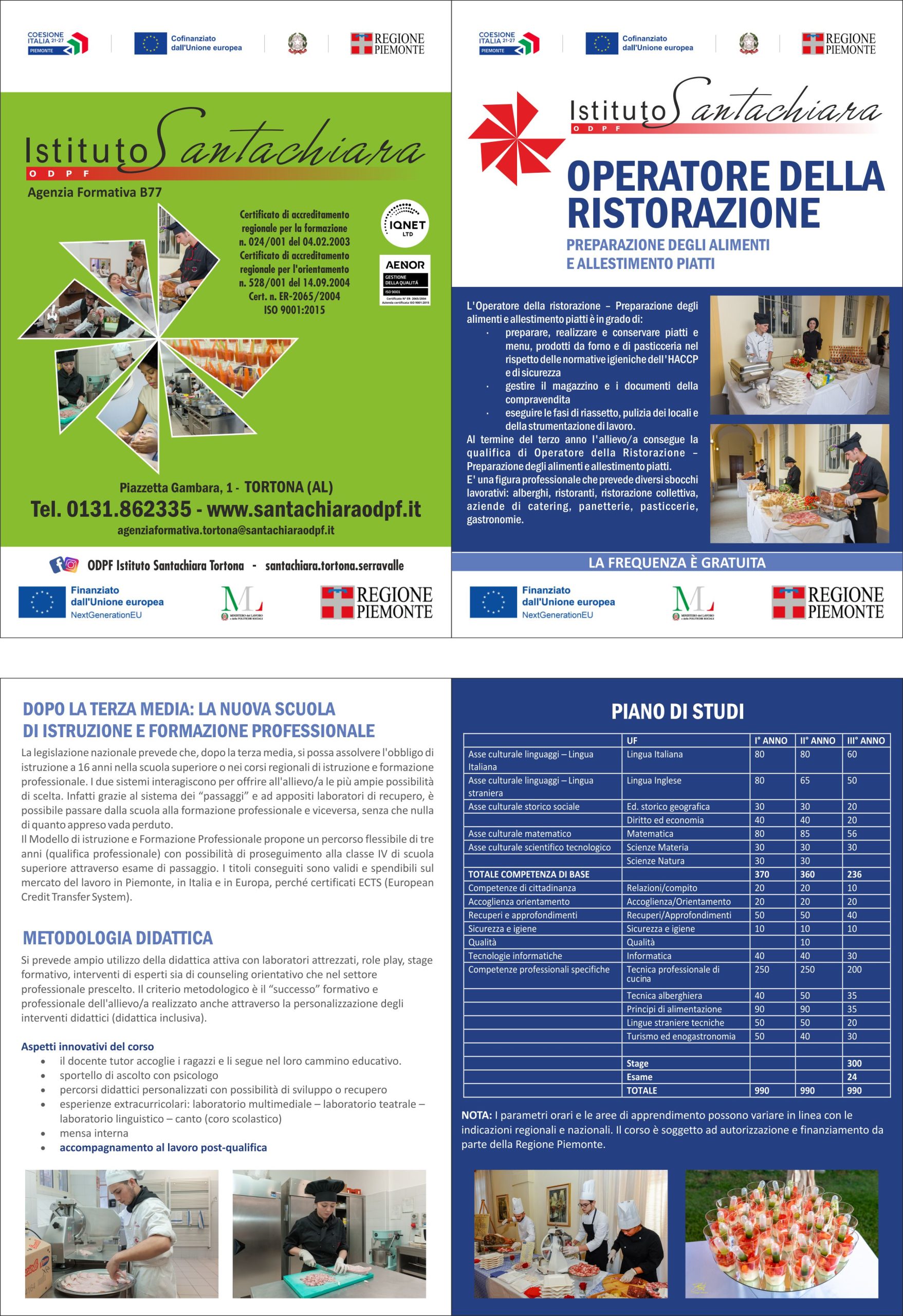 - la Qualifica professionale di OPERATORE DELLA RISTORAZIONE con indirizzo Preparazione pasti, dopo un percorso triennale.